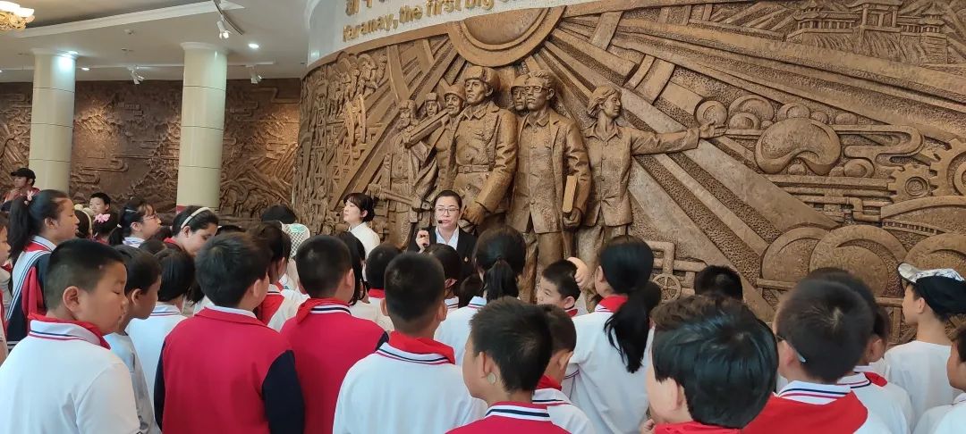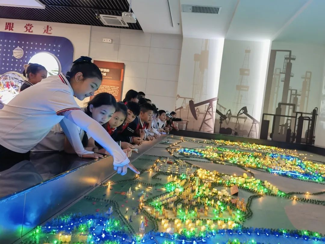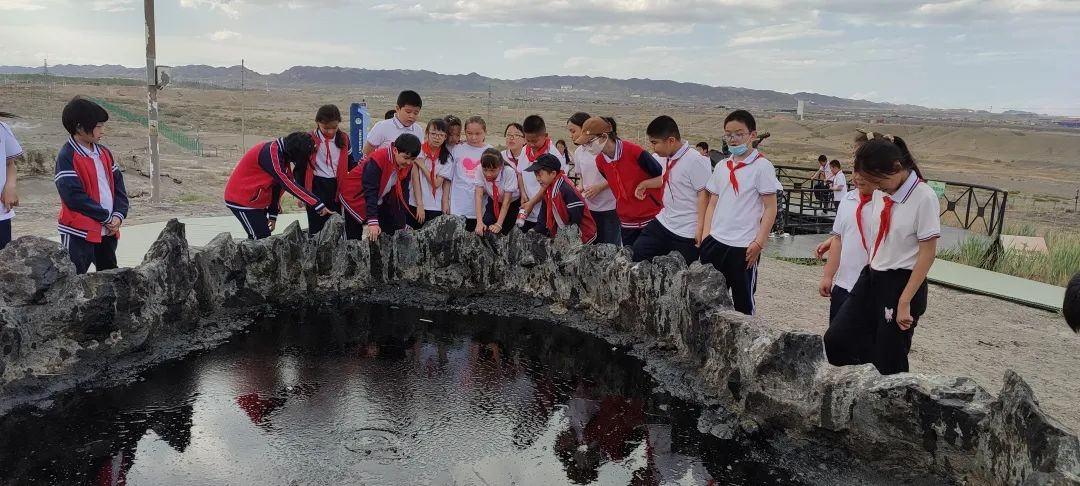 除了讓孩子們近距離了解石油之外,本次研學還組織學生“故地新游”,帶領孩子們去了經常去的黑油山、大油泡和博物館。和以往不同,這次孩子們帶著學習任務去參觀,不僅傾聽了講解員的講解,還了解了不少關于油城的知識。
