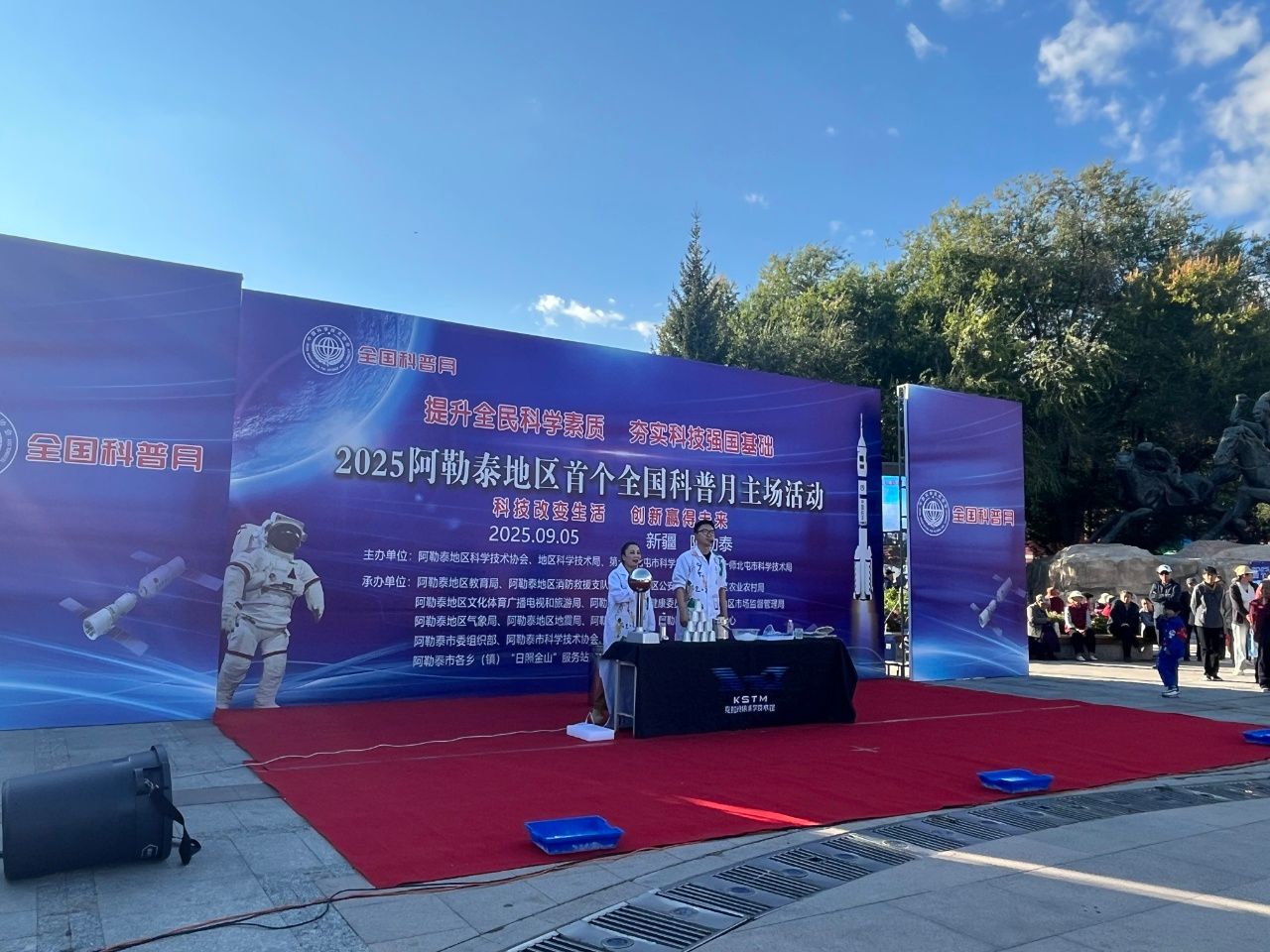 9月5日,克拉瑪依科技館受邀赴阿勒泰地區,在阿勒泰地區全國科普月主場活動開幕式上精彩亮相,以兩場沉浸式科學表演點燃當地群眾的科學熱情。