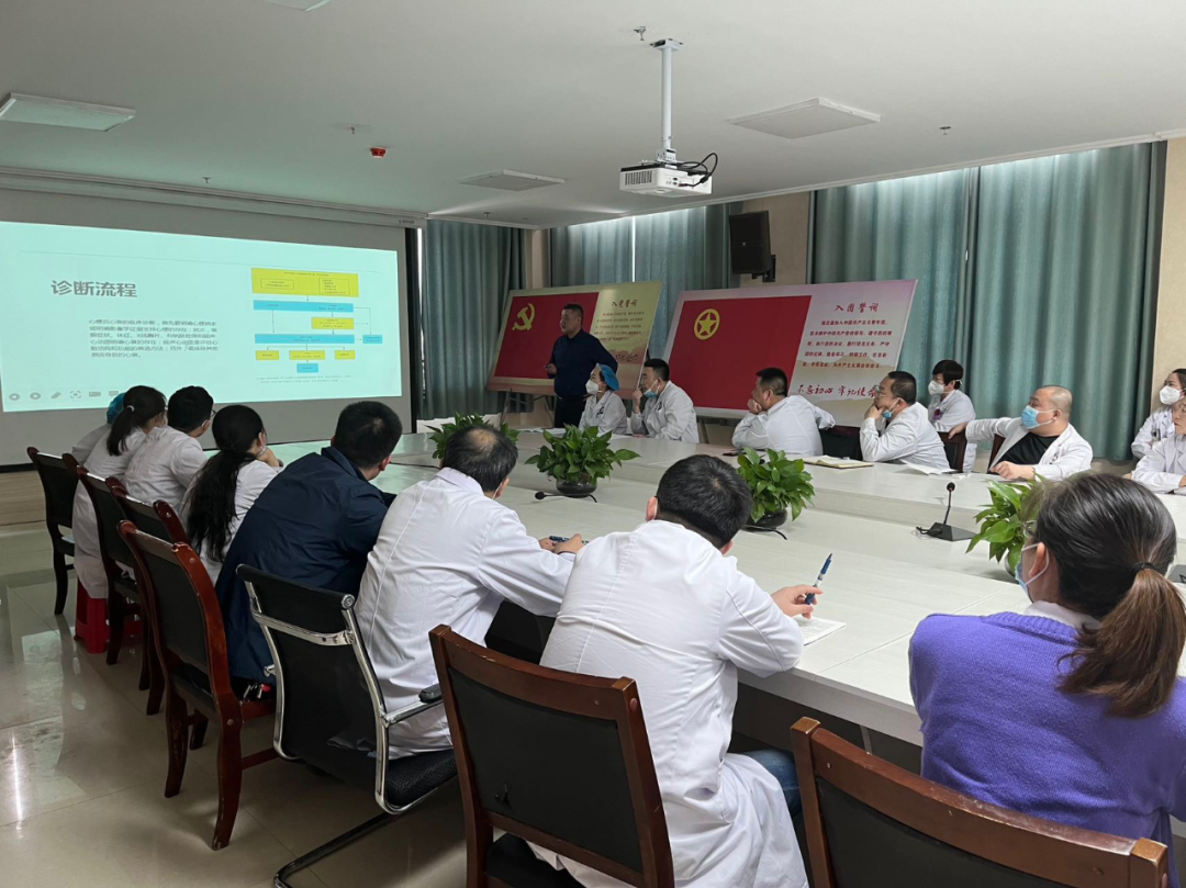培訓(xùn)中,易桂文結(jié)合醫(yī)院胸痛中心的大量臨床病例,向精河縣人民醫(yī)院醫(yī)務(wù)人員闡述了胸痛患者的自救、急性胸痛快速轉(zhuǎn)診機(jī)制和聯(lián)絡(luò)方式、高危急性胸痛和ACS早期癥狀識(shí)別、急性心肌梗死和常見(jiàn)心律失常的心電圖診等內(nèi)容。