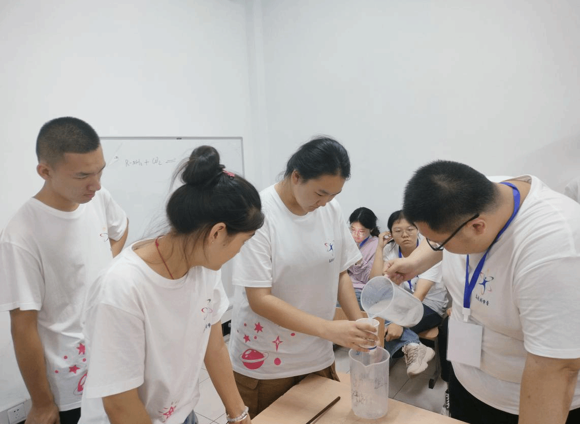 實驗探索環(huán)節(jié),同學(xué)們走進實驗室,親身體驗先進科研設(shè)備和實驗環(huán)境,在專業(yè)老師的指導(dǎo)下,開展有趣味性和挑戰(zhàn)性的化學(xué)實驗,感受科學(xué)研究的魅力,從色彩斑斕的化學(xué)反應(yīng)到奇妙的物質(zhì)變化,每一次成功的實驗都伴隨著陣陣驚喜的歡呼。
