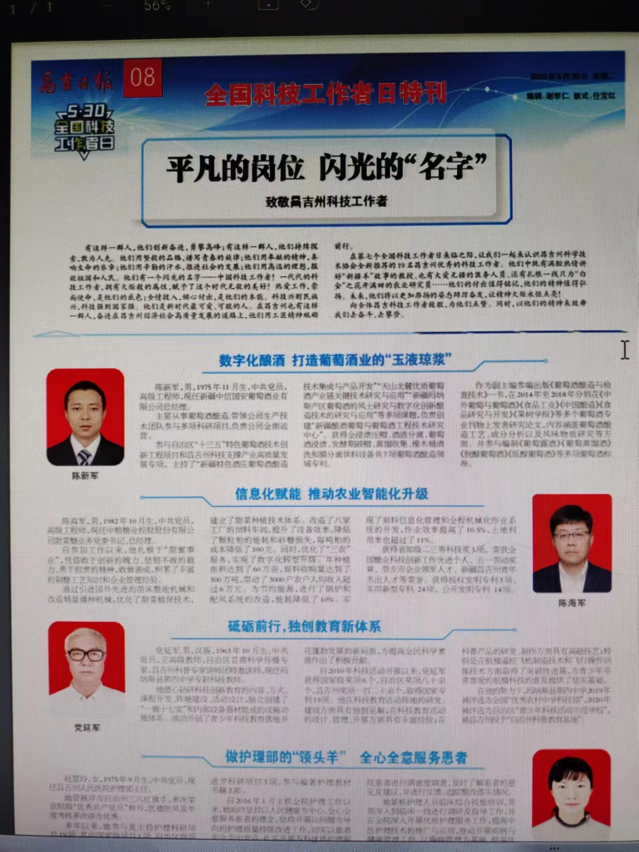 開展優(yōu)秀科技工作者學(xué)習(xí)宣傳活動(dòng)。5月30日,昌吉州科協(xié)將在州內(nèi)各媒體刊發(fā)“致科技工作者的一封信”,體現(xiàn)黨委、政府對(duì)科技工作者的關(guān)心厚愛。在昌吉日?qǐng)?bào)上將新推出19名全州科技工作者的先進(jìn)事跡,大力宣傳扎根基層一線的優(yōu)秀科技工作者,樹立“把論文寫在大地上”的價(jià)值導(dǎo)向。