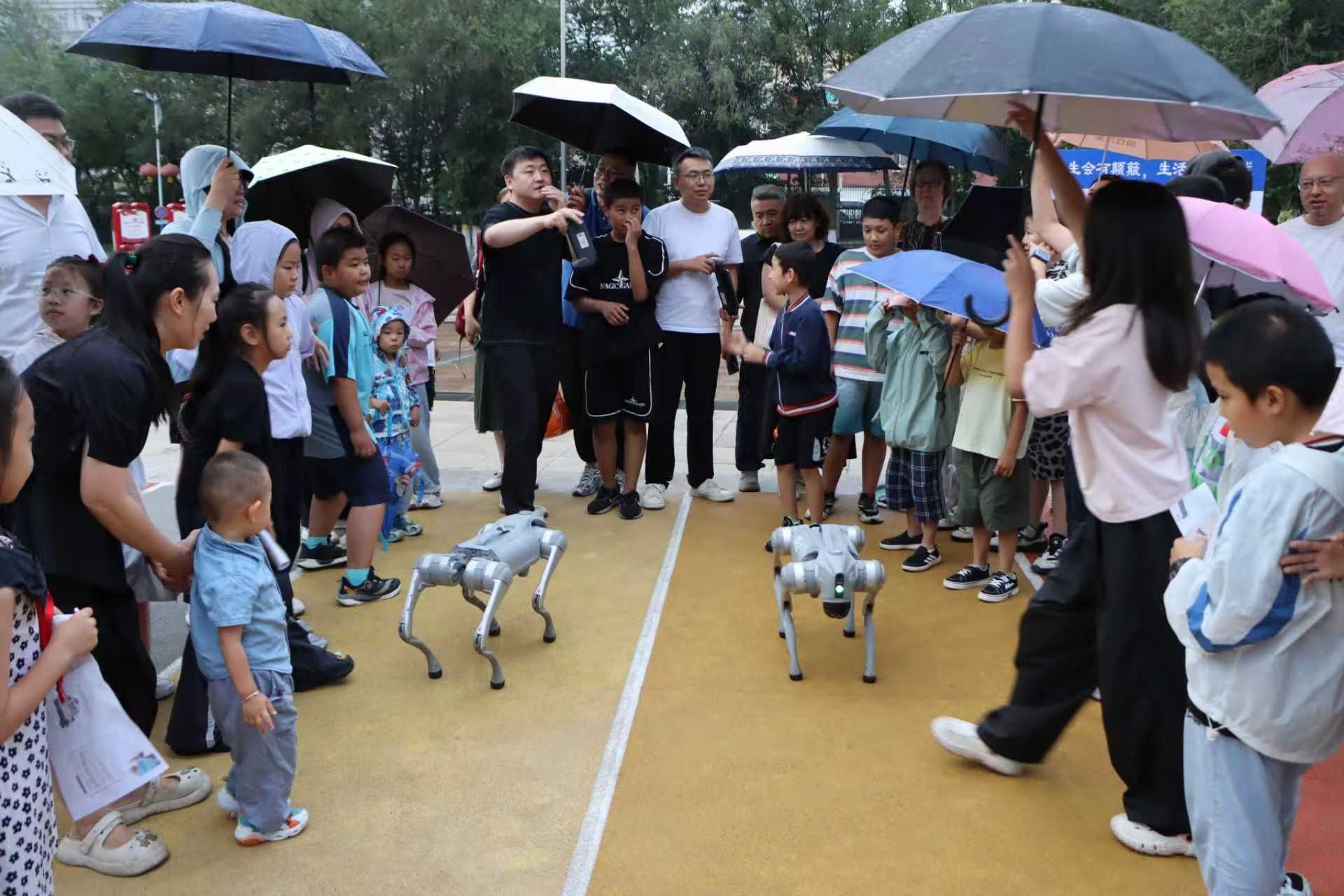 活動伊始,兩條靈動的機器狗驚艷亮相,瞬間成為全場焦點。它們身手矯健,翻跟頭、打招呼、比心等動作一氣呵成,還帶來了一段動感十足的舞蹈,引得現(xiàn)場觀眾紛紛模仿,歡聲笑語回蕩在科技館內(nèi)。隨后,緊張刺激的機器狗跑步比賽更是將氣氛推向高潮,周圍人群的歡呼聲、加油聲此起彼伏,現(xiàn)場一片沸騰。