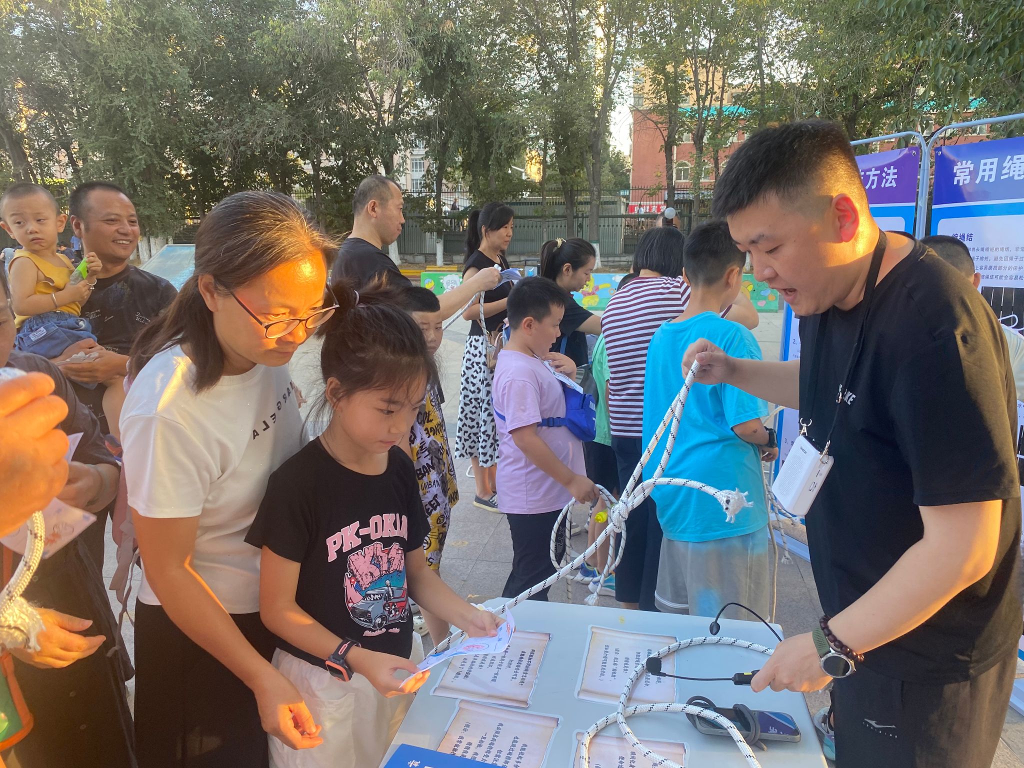 戶外技能區(qū)則是戶外愛好者的“聚集地”,孩子們學(xué)習(xí)繩結(jié)知識(shí),完成“漁人結(jié)”“八字結(jié)”等實(shí)用繩法,通過動(dòng)手實(shí)踐,不僅掌握了戶外生存技能,更體會(huì)到科學(xué)與生活的緊密聯(lián)系。