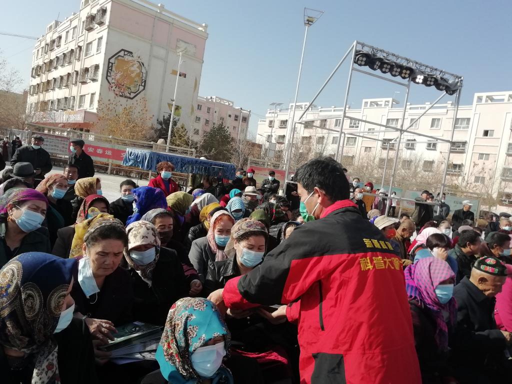 活動現場,人頭攢動,熙熙攘攘。哈密市科協志愿者通過發放疫情防控、安全生產、種植養殖、健康保健等內容的科普資料,向村民講解文明行為的目的、意義、基本內容等;市場監督管理局志愿者向村民普及食品安全、藥品安全等知識;市中級人民法院志愿者向村民普及法律知識并提供免費法律咨詢服務;市婦聯志愿者向村民普及婦女兒童保護權益內容;市殘聯志愿者向村民宣講維護殘疾人合法權益等知識。志愿者熱情的服務讓群眾“零距離”感受到了志愿者的溫暖,受到了群眾的贊譽。