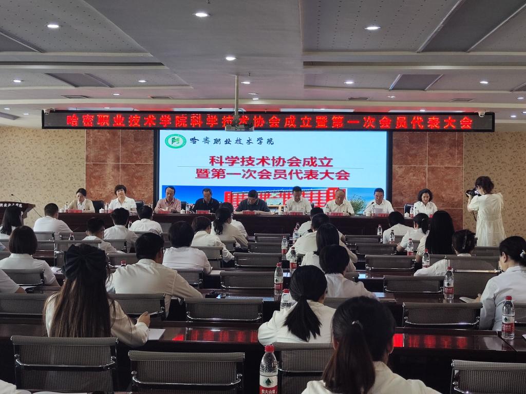2023年6月19日,哈密職業技術學院科學技術協會成立暨第一次會員代表大會召開。自治區科協一級巡視員海薩爾·夏班拜一行赴哈密職業技術學院參與指導高??茀f成立大會,哈密市科協黨組副書記、主席蘇勝陪同參與。