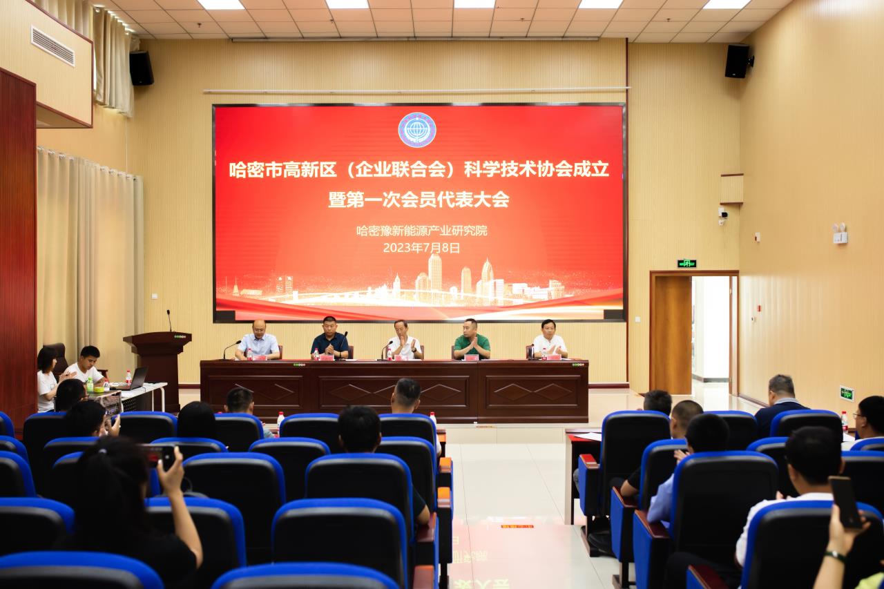 在自治區(qū)科協(xié)的精心指導(dǎo),哈密市科協(xié)及哈密市高新區(qū)(企業(yè)聯(lián)合會)的共同努力下,哈密市高新區(qū)(企業(yè)聯(lián)合會)科學(xué)技術(shù)協(xié)會(以下稱園區(qū)科協(xié))成立暨第一次會員代表大會于2023年7月8日召開。哈密市科協(xié)黨組副書記、主席蘇勝參加園區(qū)科協(xié)成立大會,哈密豫新能源產(chǎn)業(yè)研究院副院長譚興國教授主持會議。