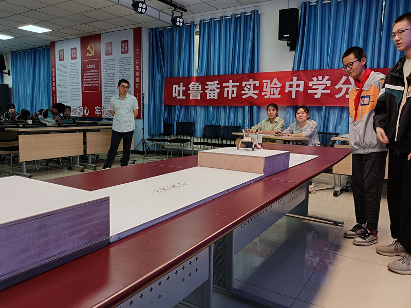 在新疆賽區主辦方的指導下,吐魯番市在市實驗中學、托克遜縣郭勒布依鄉中心學校分設兩個賽點,其中伊拉湖鎮中學參賽師生到郭勒布依鄉中心學校賽點參賽。新疆科技館工作人員進行了現場指導,確保比賽全程嚴格按照賽制規則和要求進行。每個參賽團隊的未來太空車在重量、尺寸符合要求的前提下,在規定時間內翻越障礙物、到達指定位置算挑戰成功,由裁判根據翻越障礙物所用時間進行打分,分數相同由裝置質量輕排名靠前。比賽現場十分火熱,同學們不斷挑戰新紀錄,面對強勁的對手迎難而上,展現了參賽學生不畏艱難、迎難而上的優秀品質,取得了優異成績。通過全體工作人員的共同努力,吐魯番市未來太空車命題初賽活動嚴謹有序,取得圓滿成功。