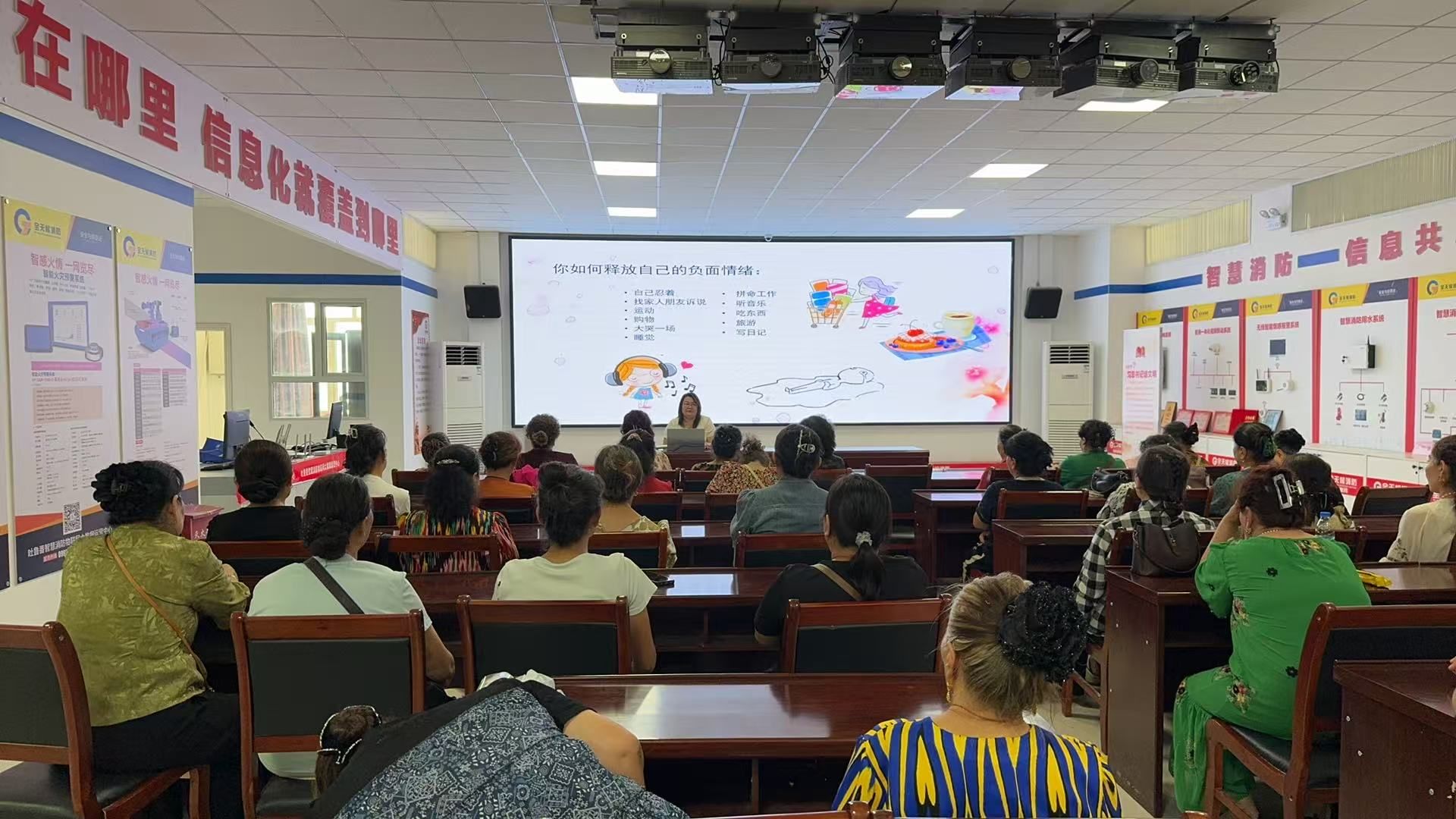 參觀結(jié)束后,由媄樂心理咨詢的美熱木老師為大家?guī)砹艘粓鲋黝}為“如何緩解心理壓力”的專題課程。美熱木老師結(jié)合婦女在家庭和社會中的多重角色,通過案例分析、互動問答等方式,生動講解了心理壓力的成因、表現(xiàn)及緩解方法,引導(dǎo)大家學(xué)會情緒管理,提升心理調(diào)適能力。現(xiàn)場氣氛熱烈,婦女們積極參與互動,紛紛表示受益匪淺。