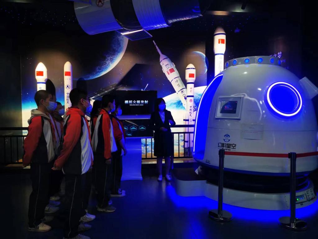 活動(dòng)現(xiàn)場,學(xué)生們共同觀看了神舟十三號返回地球影像影片,聆聽了一場航空航天知識(shí)專題講座,并參觀體驗(yàn)了科技館內(nèi)模擬火箭發(fā)射等虛擬現(xiàn)實(shí)展品展具,一起感受中國航天技術(shù)的發(fā)展,了解了中國航天人的辛苦付出,加深了青少年的愛國熱情,小小的航天夢已在廣大青少年的心中點(diǎn)燃。