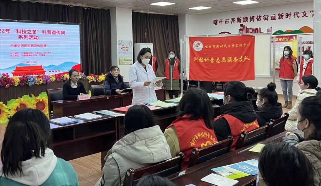 為貫徹落實好全民科學素質行動實施綱要《2021—2025》,弘揚科學精神、傳播科學知識、提升科學素質,喀什市科協組織各全民科學素質成員單位,于2023年1月11日啟動,分兩個階段動員相關單位和專業技術人員,深入9個鄉鎮和8個街道,開展主題鮮明、內容豐富、形式多樣的“科技之冬”科普宣傳周系列活動。通過優化整合各成員單位的科普資源,采取面對面宣傳黨的二十大精神、專題科普講座、科普骨干培訓、科普宣傳服務、惠民行動等方式,舉辦以農牧林技術、防災減災、安全生產、科學普及、環境保護、疫情防控、醫療保健、消防安全、交通安全、食品安全等科普內容為主的講座45場次、受益群眾達8488人次,科普骨干培訓2場次、受訓人員達56人次。活動期間,組建科技科普志愿服務隊17支,180余名科技科普志愿隊員現場為基層鄉村干部、農牧林大戶及廣大群眾發放宣傳單16958份、科普書籍4030本、宣傳掛圖2428張、發放藥品235盒,接診群眾達305人次。